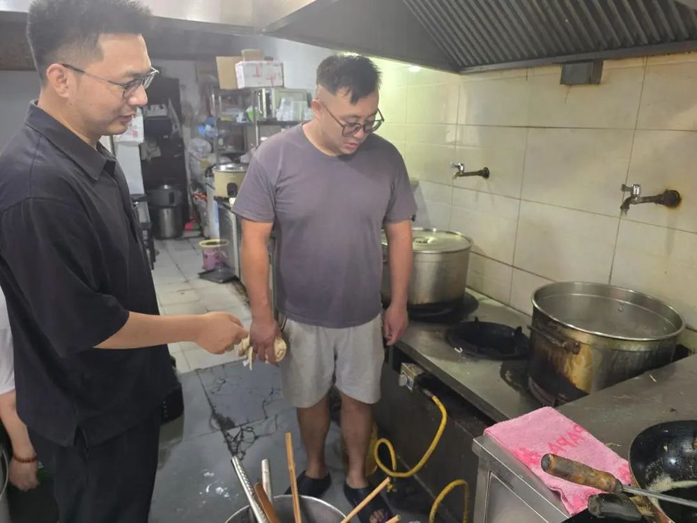 上午7點(diǎn),東關(guān)街的晨光剛剛漫過青磚墻,安全員魯毅便已穿上工作服,開始了一天的工作。他首先來到街區(qū)東側(cè)的餐飲商鋪聚集區(qū),手持測(cè)溫儀檢查后廚用電情況?!巴跏澹@根軟管用了三年了吧?臺(tái)風(fēng)天風(fēng)大,咱們換個(gè)防爆管更安心?!濒斠氵呎f邊聯(lián)系燃?xì)夤竟ぷ魅藛T上門更換新管,不到一小時(shí)便完成更換。這是他今日處理的第3起燃?xì)怆[患。