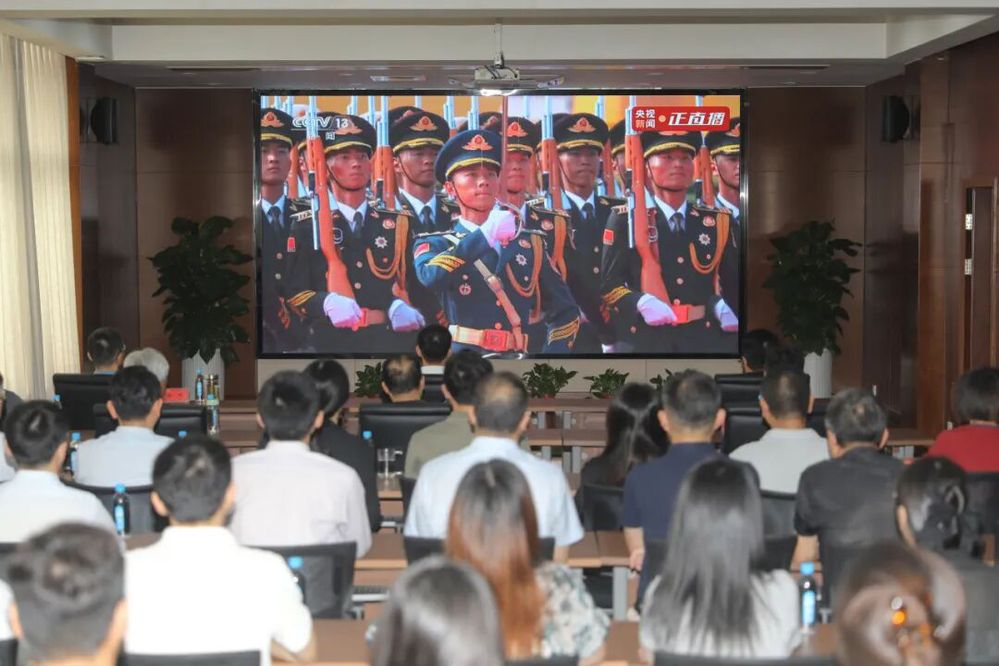 集中觀看現(xiàn)場氣氛莊重肅穆,大家全神貫注地觀看直播,認(rèn)真聆聽習(xí)近平總書記重要講話,深刻感悟抗戰(zhàn)勝利的偉大意義和歷史啟示。當(dāng)國旗護衛(wèi)隊邁著鏗鏘步伐走來,當(dāng)鮮艷的五星紅旗冉冉升起,當(dāng)新型裝備方隊展示大國重器時,大家不由涌現(xiàn)出對祖國的深情熱愛和崇敬之情,同時為國家科技的飛速發(fā)展和人民軍隊的強盛軍威感到無比驕傲和自豪。
