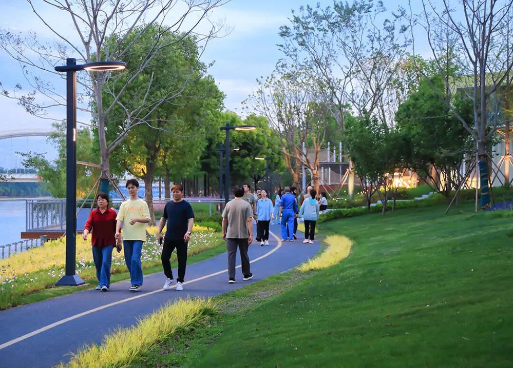 在這里,水清、岸綠、景美,市民和游客置身于流動(dòng)的生態(tài)畫卷,休閑娛樂(lè)、放飛自我、流連忘返,共享綠意盎然的濱水步道,感受歷史與現(xiàn)代的交融、自然與人文的共鳴。