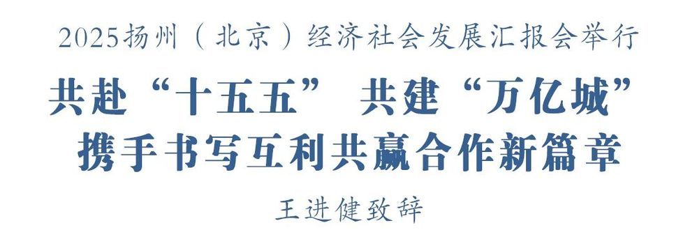 初冬北京,層林盡染。11月13日,2025揚(yáng)州(北京)經(jīng)濟(jì)社會(huì)發(fā)展匯報(bào)會(huì)在京舉行,全面展示揚(yáng)州開放發(fā)展最新成果,深度對(duì)接北京優(yōu)質(zhì)資源與創(chuàng)新力量,以奮進(jìn)之姿共赴“十五五”新征程,聚力推動(dòng)揚(yáng)州高質(zhì)量邁入“萬億之城”,攜手書寫互利共贏合作新篇章。市委書記王進(jìn)健出席并致辭。